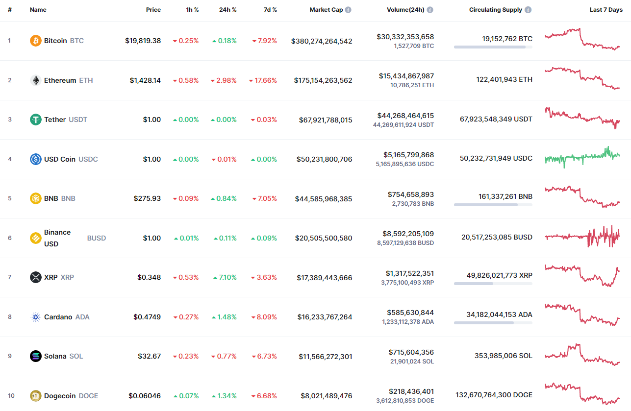[지난주] 2022.09.09 - [Crypto/시황] - 코인 시총 탑50 (2022년 9월 2주차)