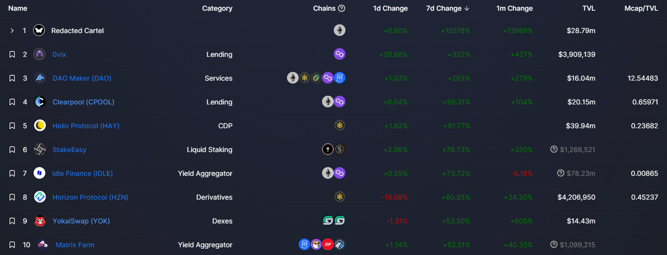 -7일간 체인 TVL 상승률 순위