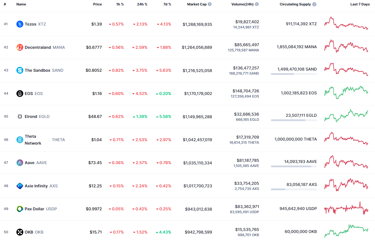 여기도 크나큰 상승이나 하락은 없습니다. 최근 디파이쪽에서 약간 두각을 보이고 있는 OKB가 50위권 안에 진입한 것이 조금 눈에 보이네요.