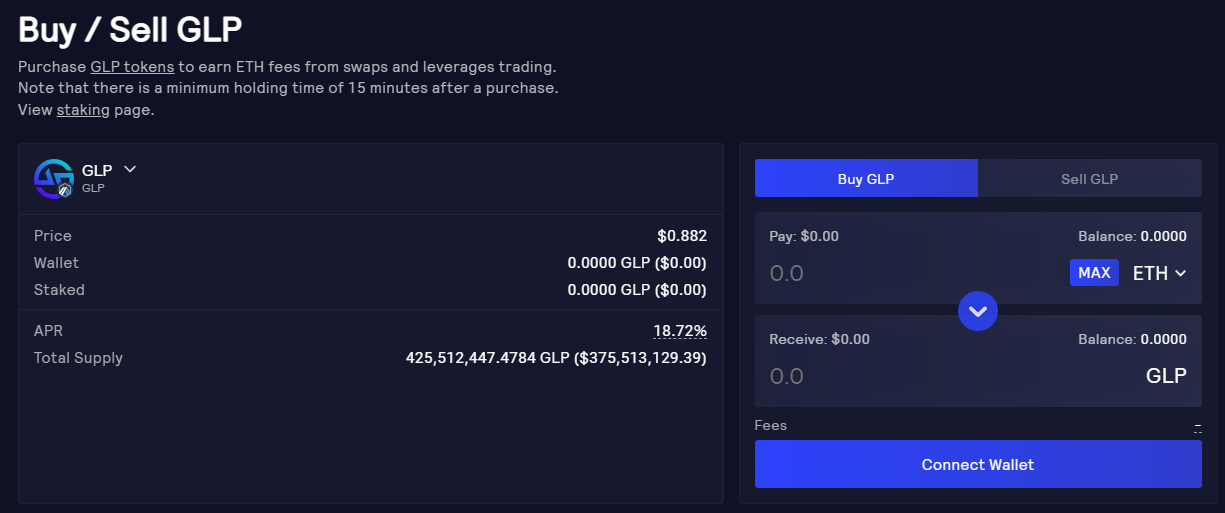그래서 GLP는 그냥 사는 것만으로 유동성 공급을 한다고 생각하시면 될 것 같습니다.저도 GLP를 사보지는 않았는데, 그냥 사면 알아서 저 APR만큼 ETH fee도 주는 것 같네요. 저번 포스팅에서 말씀드렸듯이 GLP는 일반적인 토큰의 개념이 아니라 스테이블 코인과 50:50 계속해서 리밸런싱되기 때문에 약간 리스키합니다.